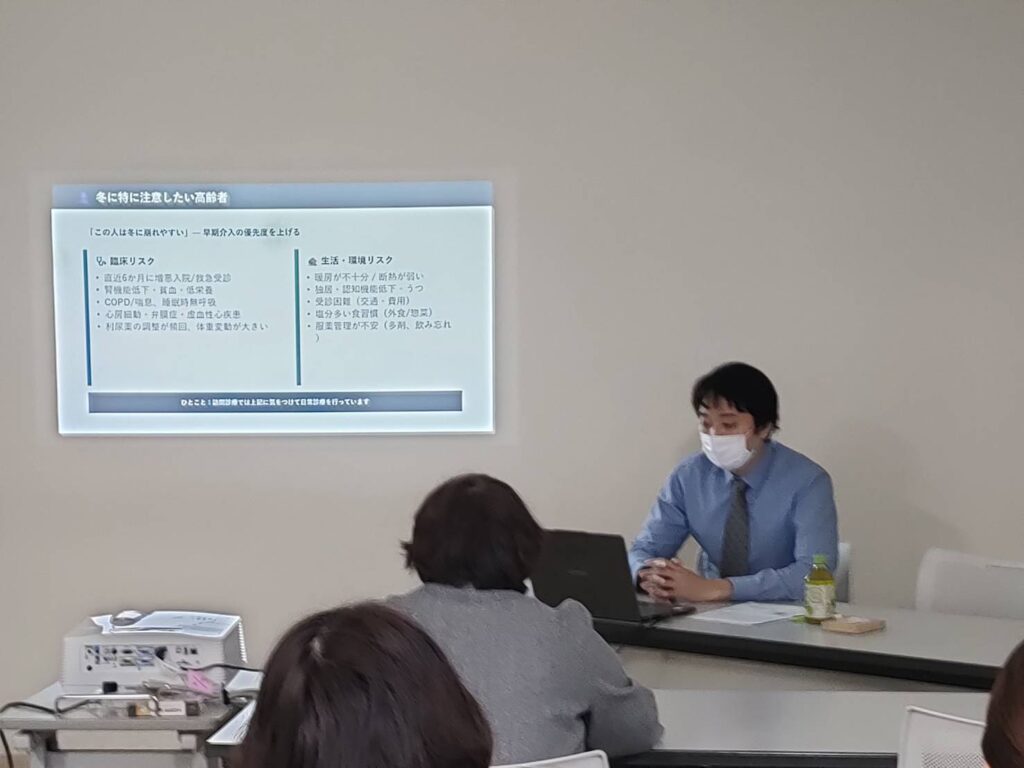 「冬時期における心不全リスクと予防・対策」について塩見大輔院長より講義を行いました。